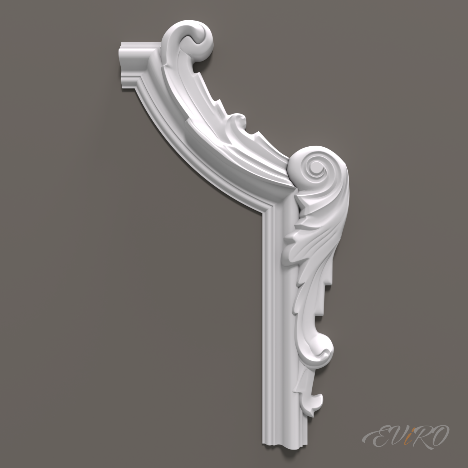 Парные декоративные углы EViRO Модель 1.52.290 и 1.52.293 - гипсовый декор для отделки стен, потолков, дверей, окон, зеркал и т.д. С помощью такого гипсового декора можно сделать свой интерьер уникальным и индивидуальным. Декоративные углы из гипса легко поддаются окрашиванию тем самым идеально подойдут под любую цветовую гамму в помещении. Отлично смотрится такая лепнина из гипса в спальне, гостиной, кабинете, детской комнате, а также в различного рода помещениях общественного назначения. Купить гипсовые декоративные элементы можно онлайн или оформив заказ по телефонам, которые указаны на сайте производителя.