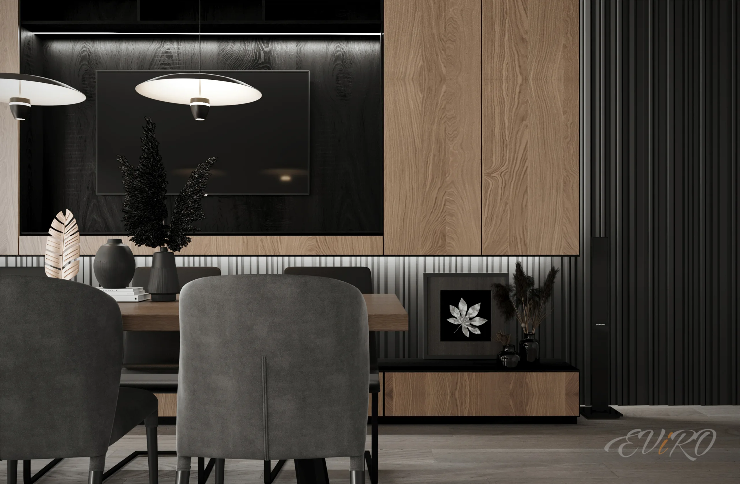 Вариант 5. Стеновые рейки с подсветкой в гостиной