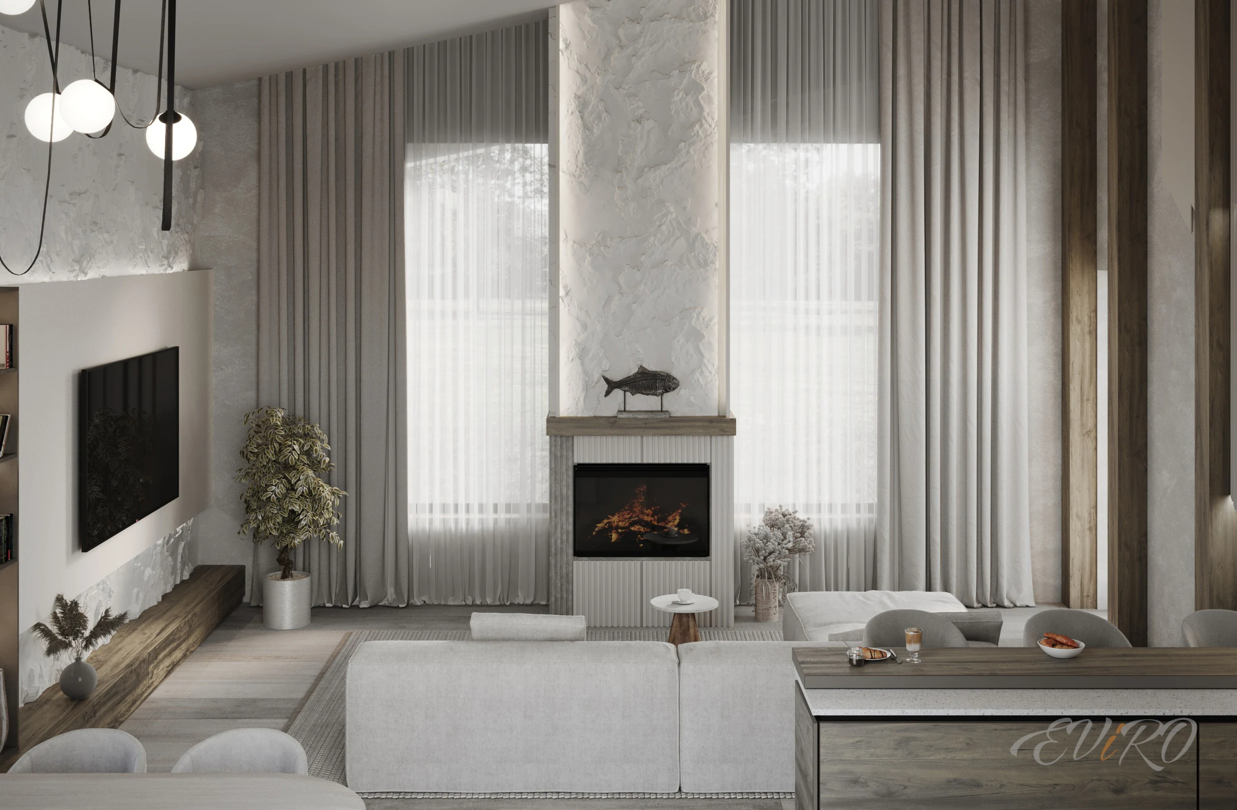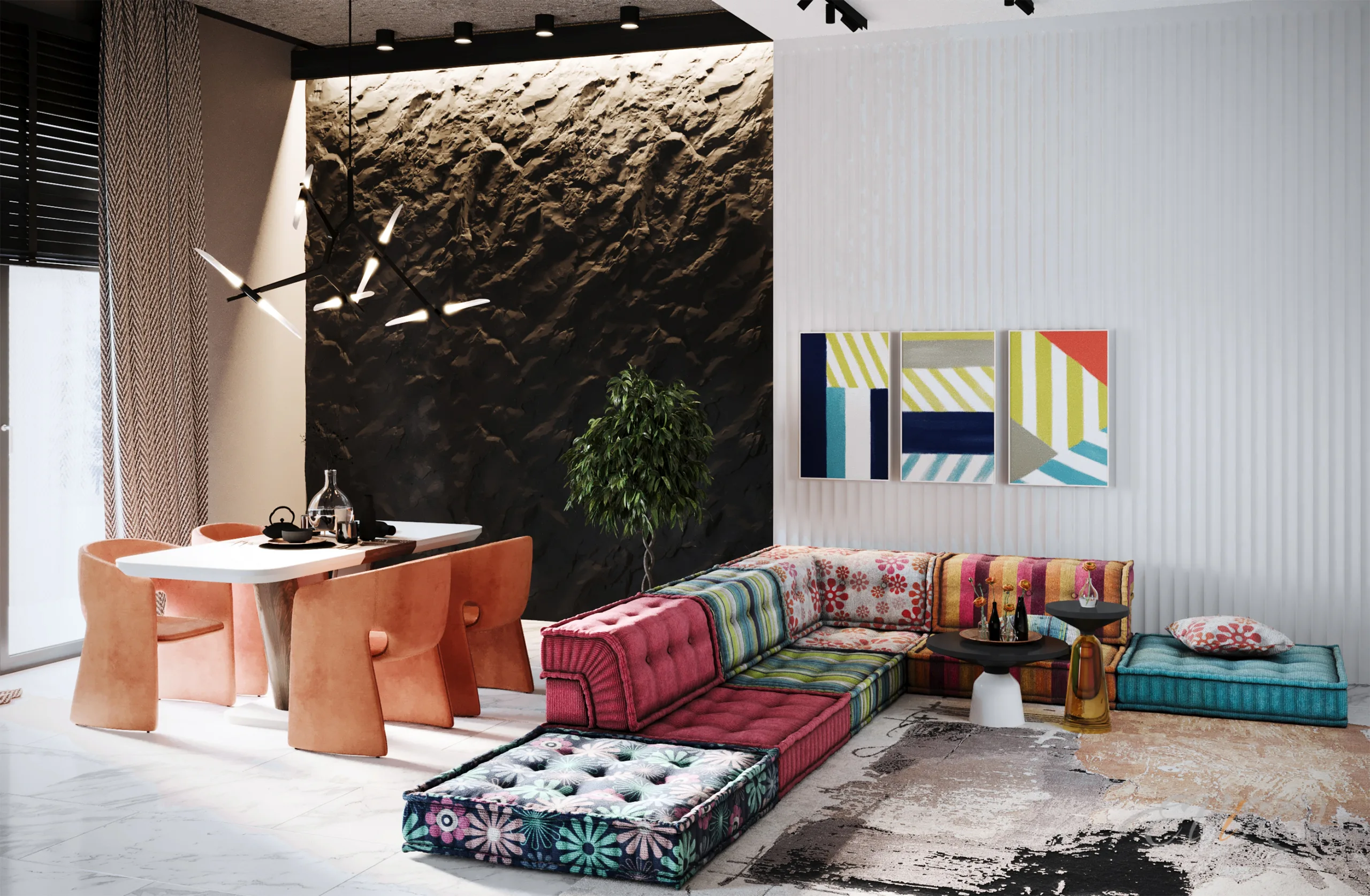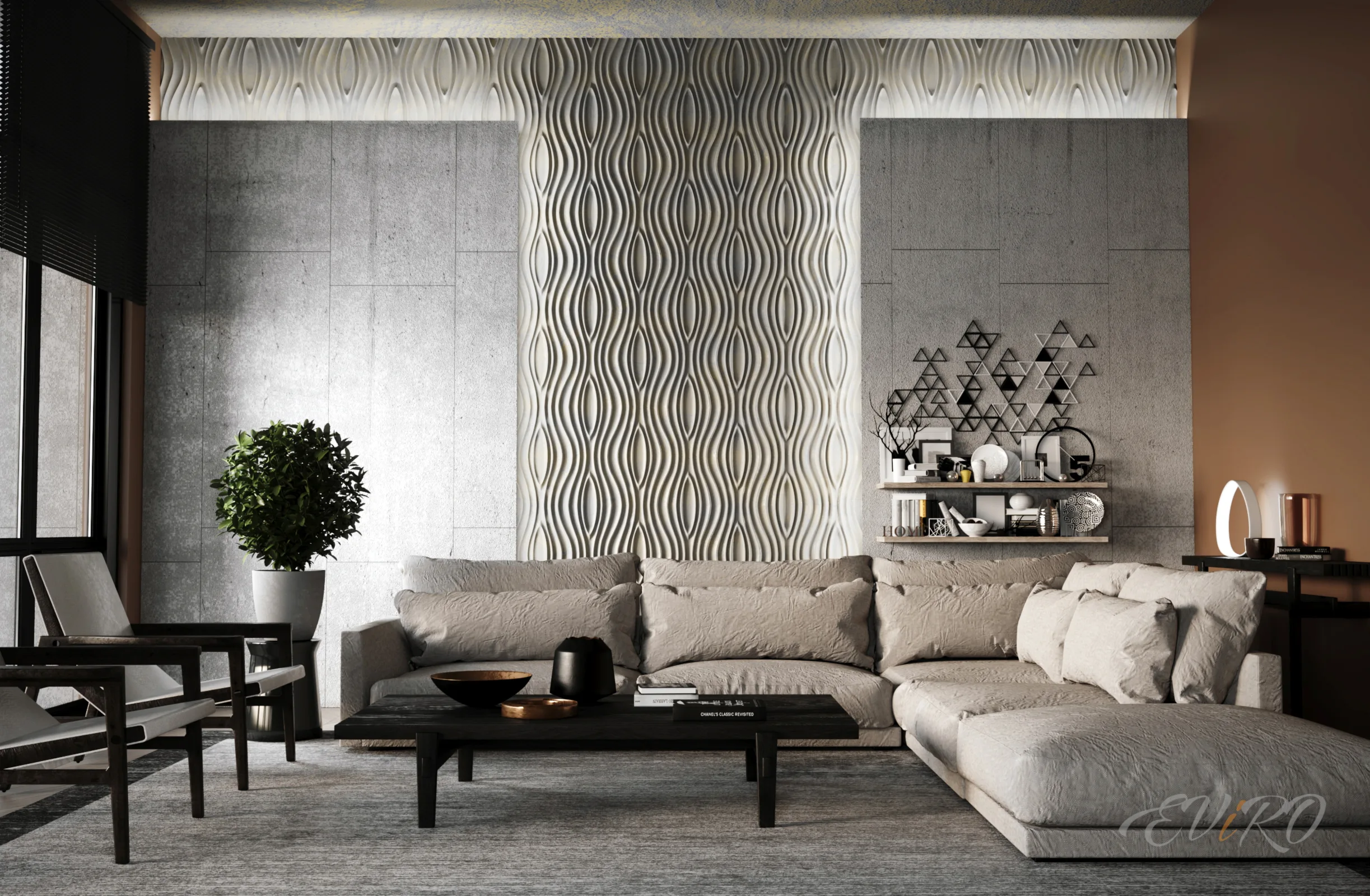 Вариант 2. Оформление зоны гостиной 3D панелями