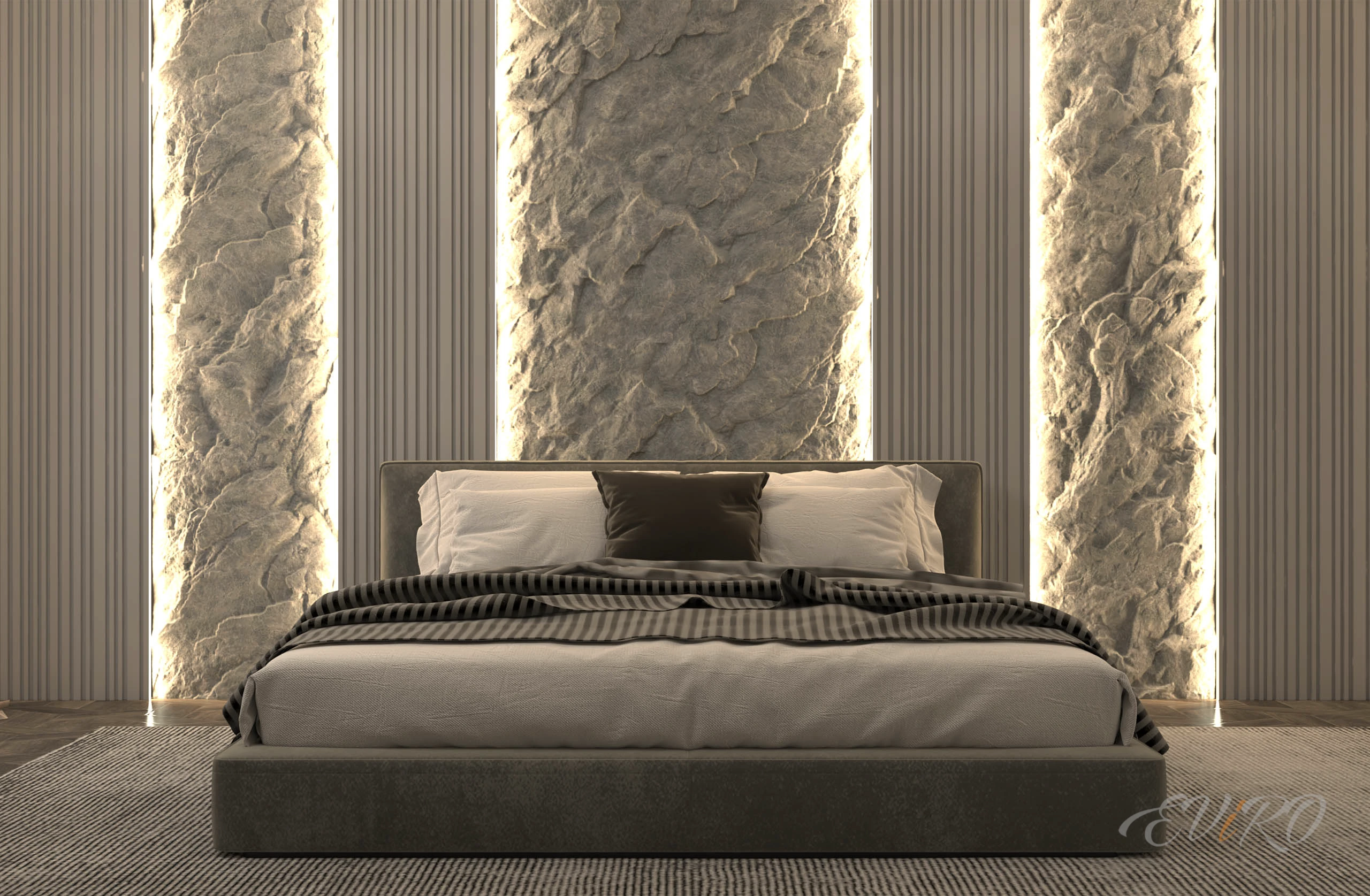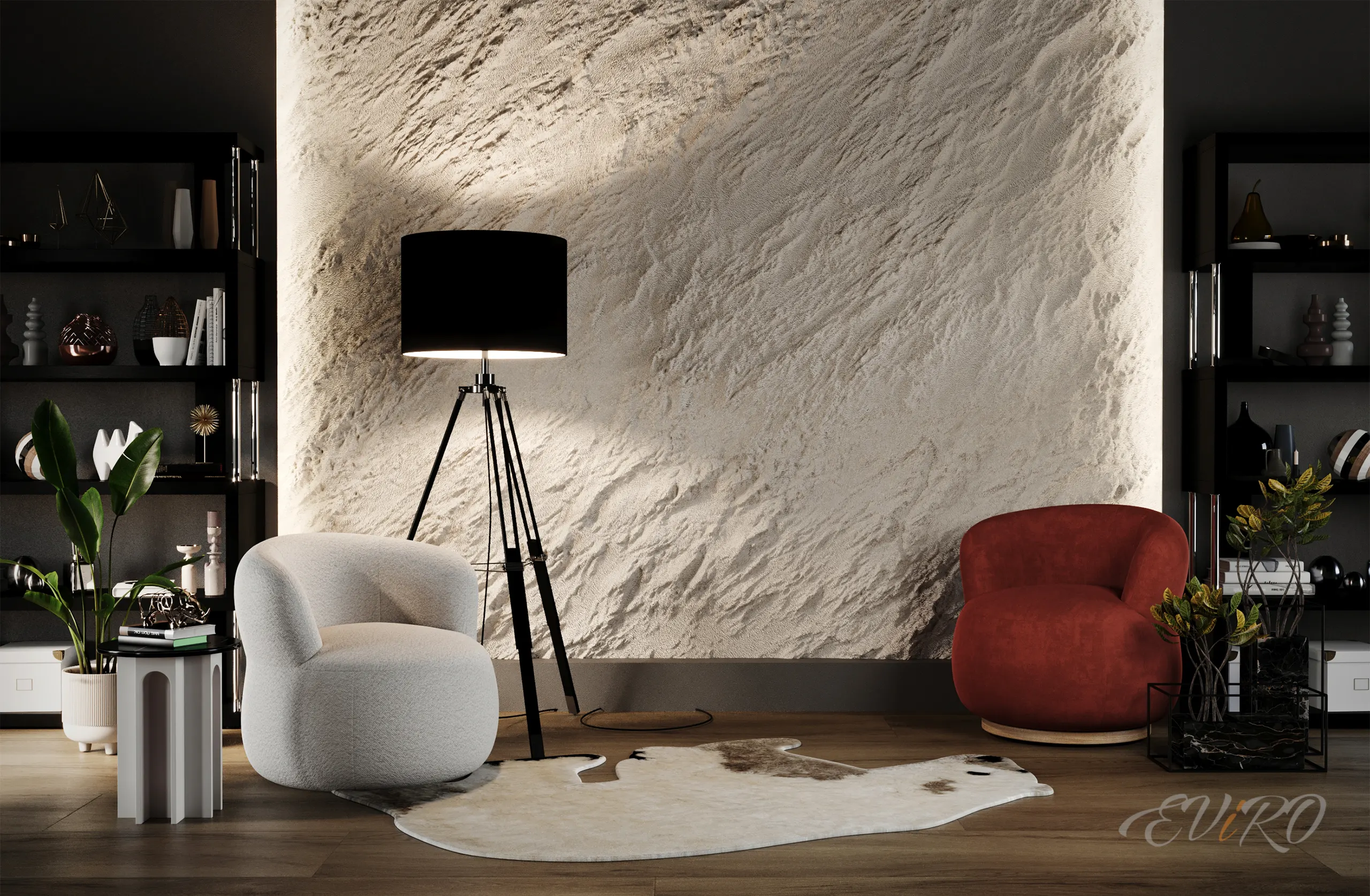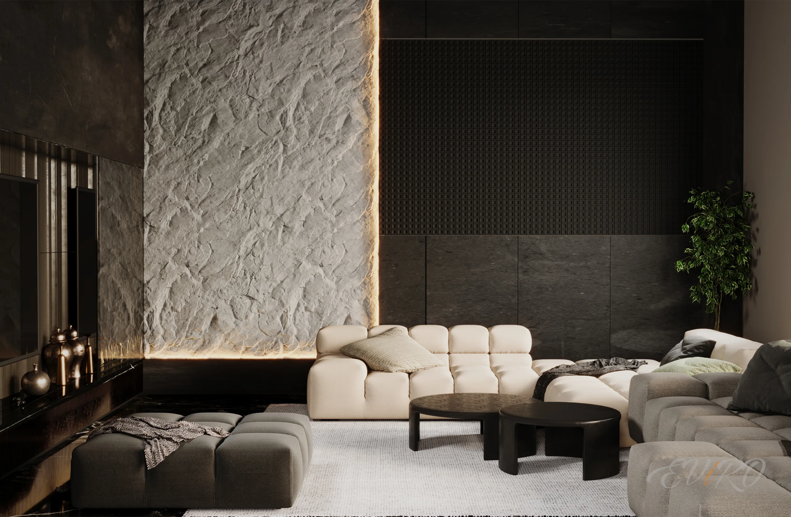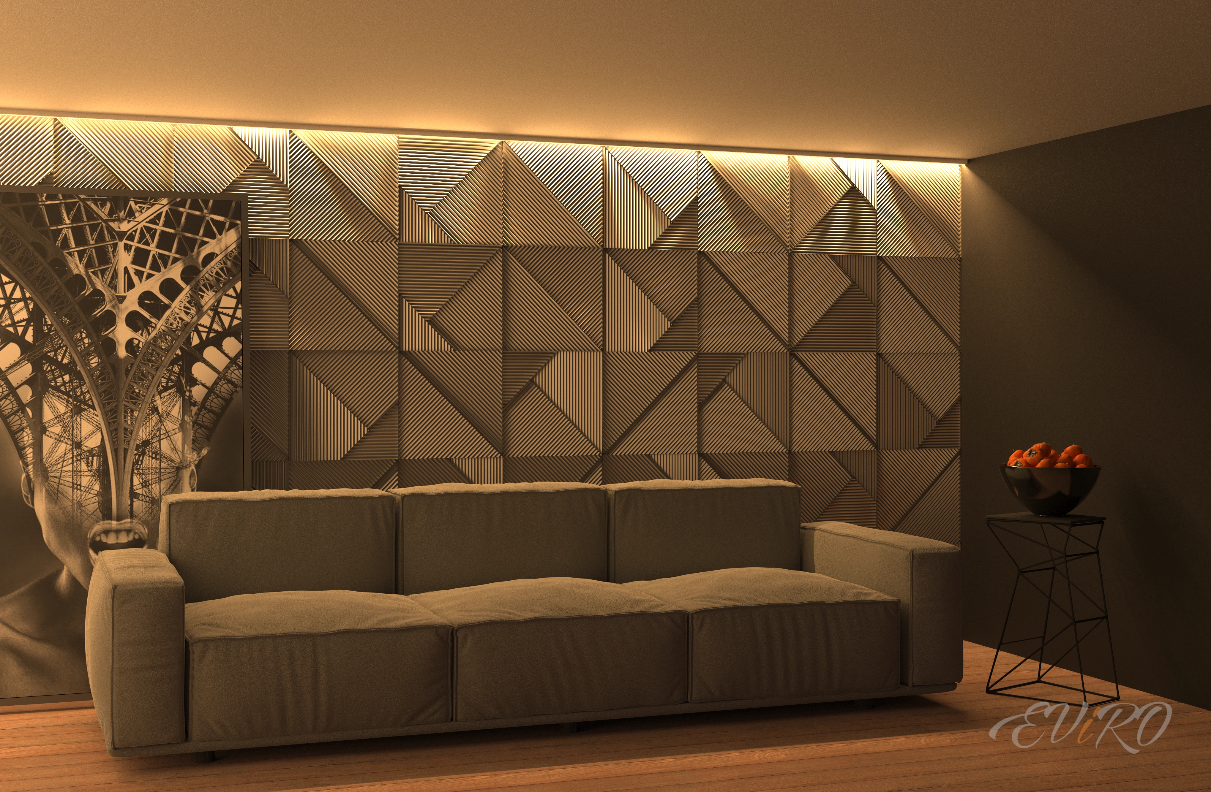 Использование гипсовых угловых профилей EViRO для подсветки декоративных рельефных панелей из гипса позволяет создать современный и необычный интерьер. Игра света и тени на стеновых 3d панелях создает неповторимую атмосферу уюта и комфорта.