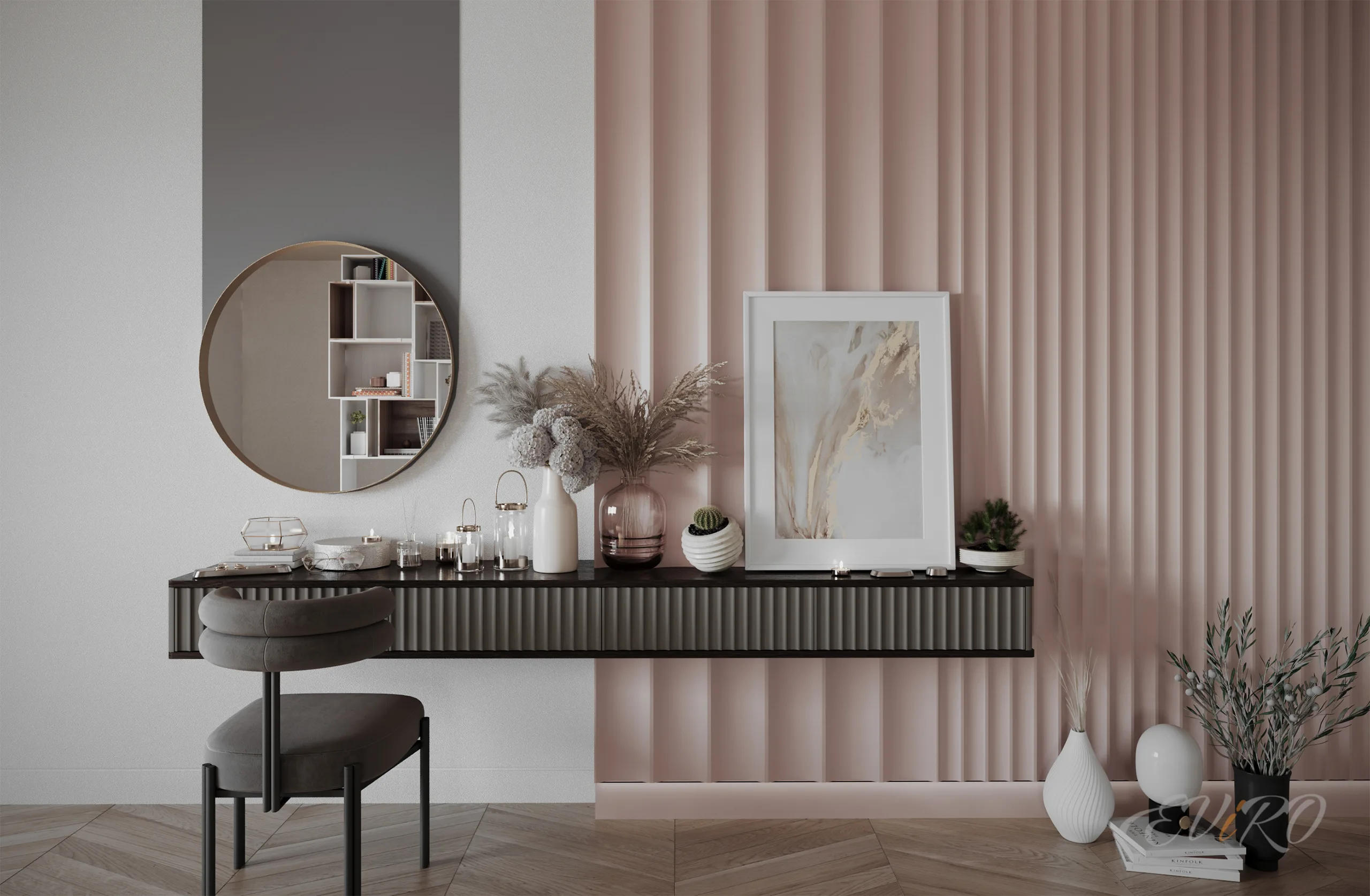 Мягкий ритм декоративной рейки, словно нежная мелодия, добавит шарма и утонченности вашему интерьеру. А панели с плавными закруглениями подарят стенам ощущение нежности и гармонии, смягчая строгие углы и создавая атмосферу безмятежности.