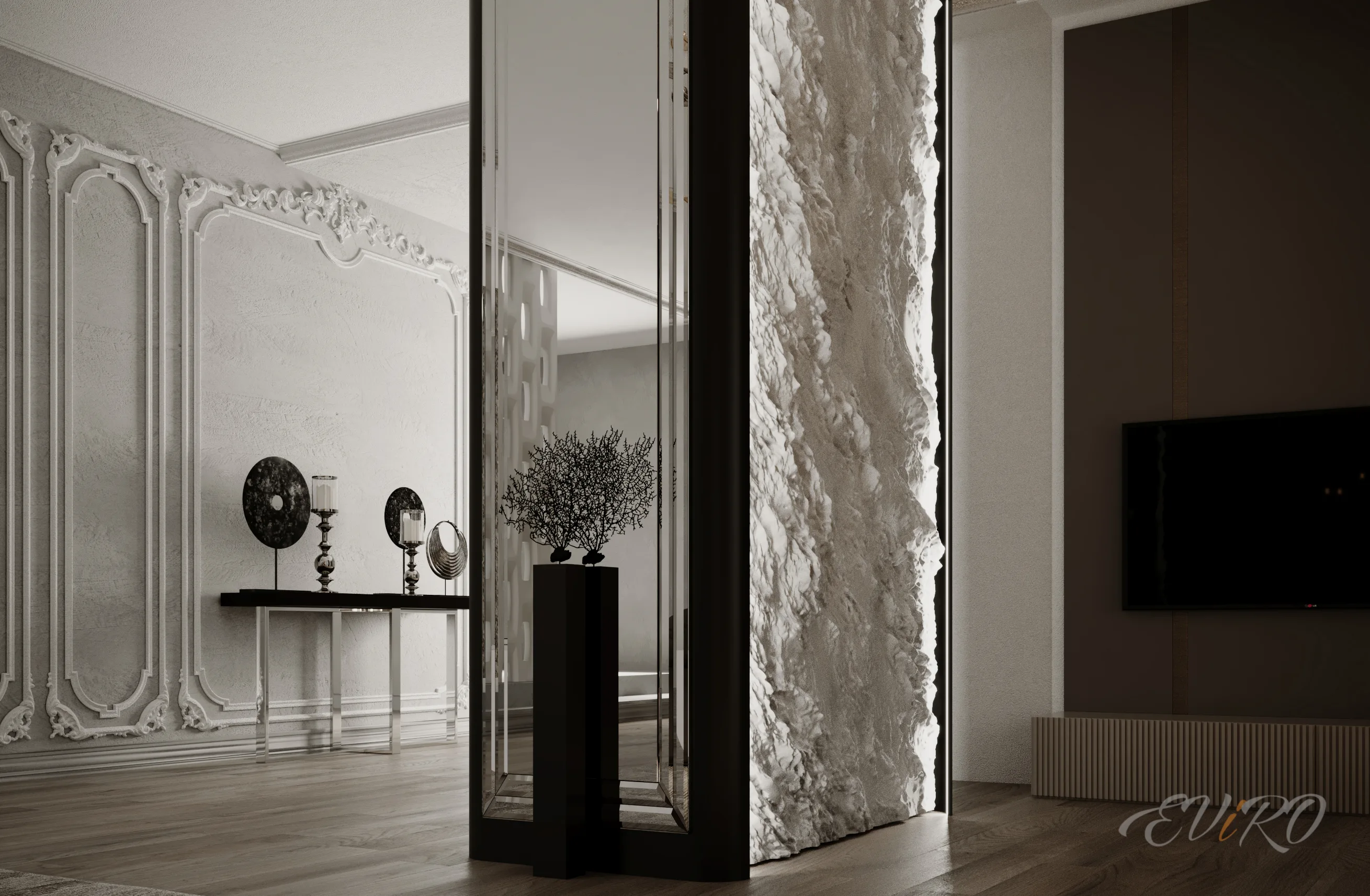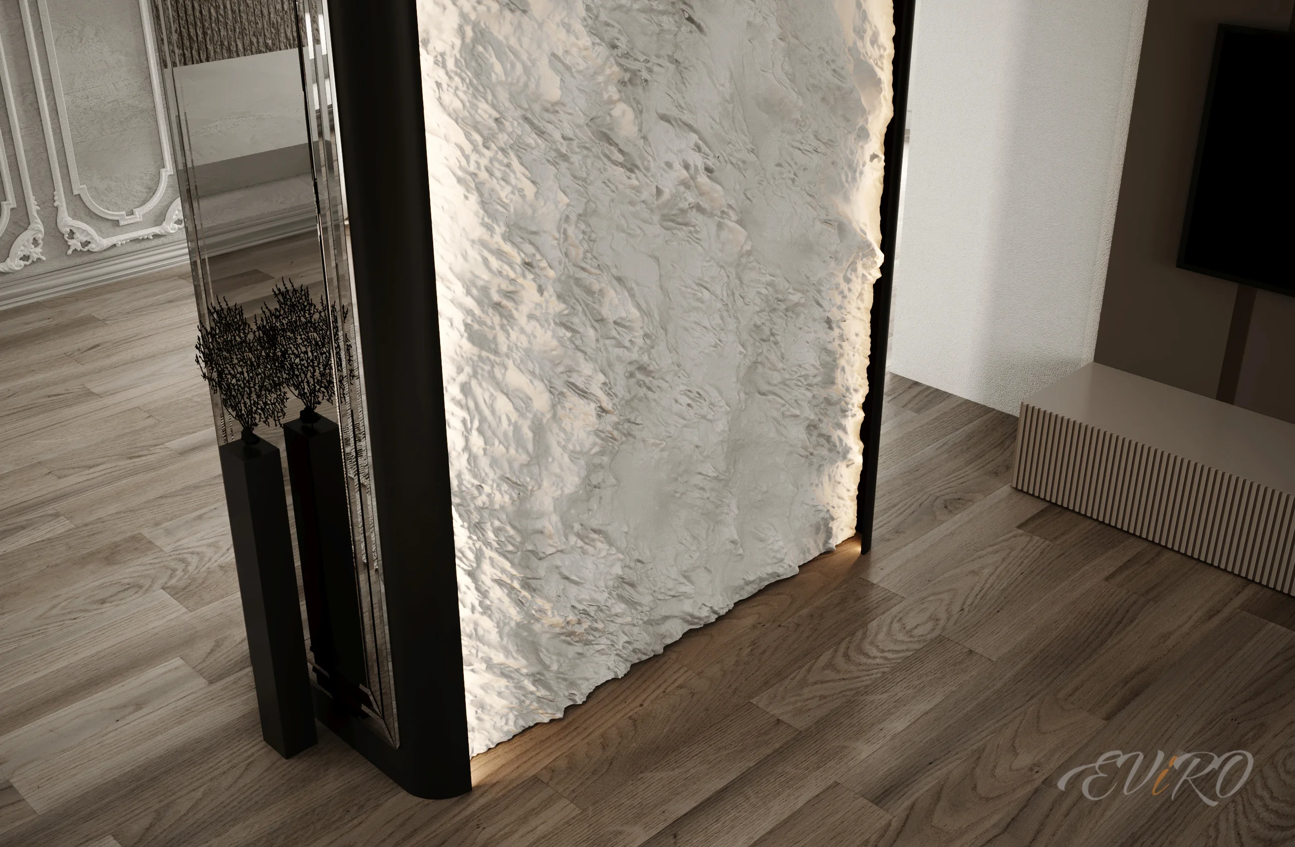 Таким образом, скругленный угол EViRO не просто элемент дизайна, но и важный компонент, который позволяет раскрыть все преимущества современного декора, акцентируя внимание на уникальности и изяществе пространства.